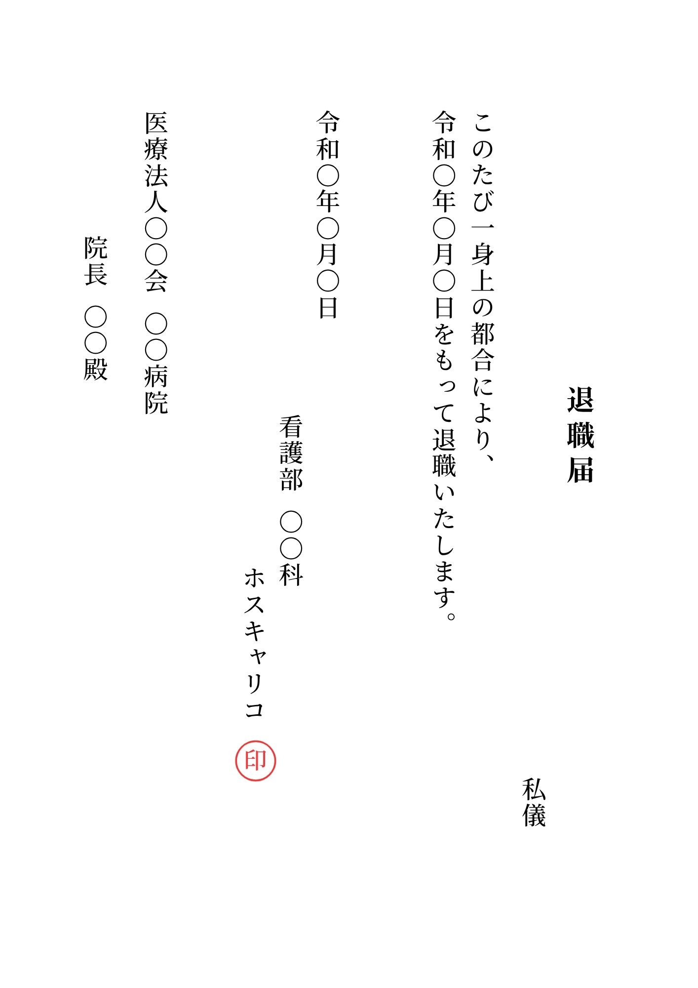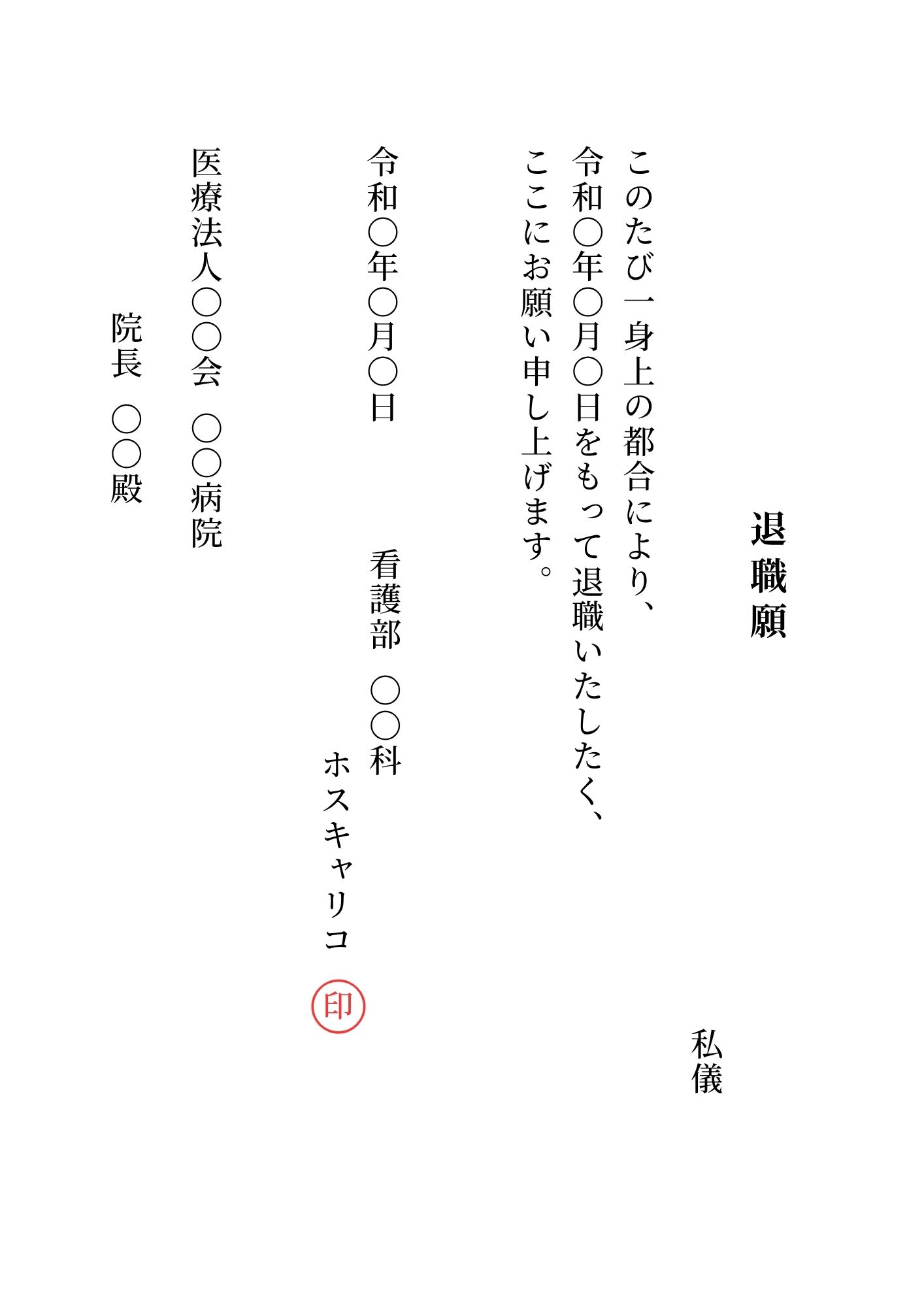 退職願・退職届を提出するのは直属の上司(師長)ですが、退職願・退職届の宛名は院長または理事長です。