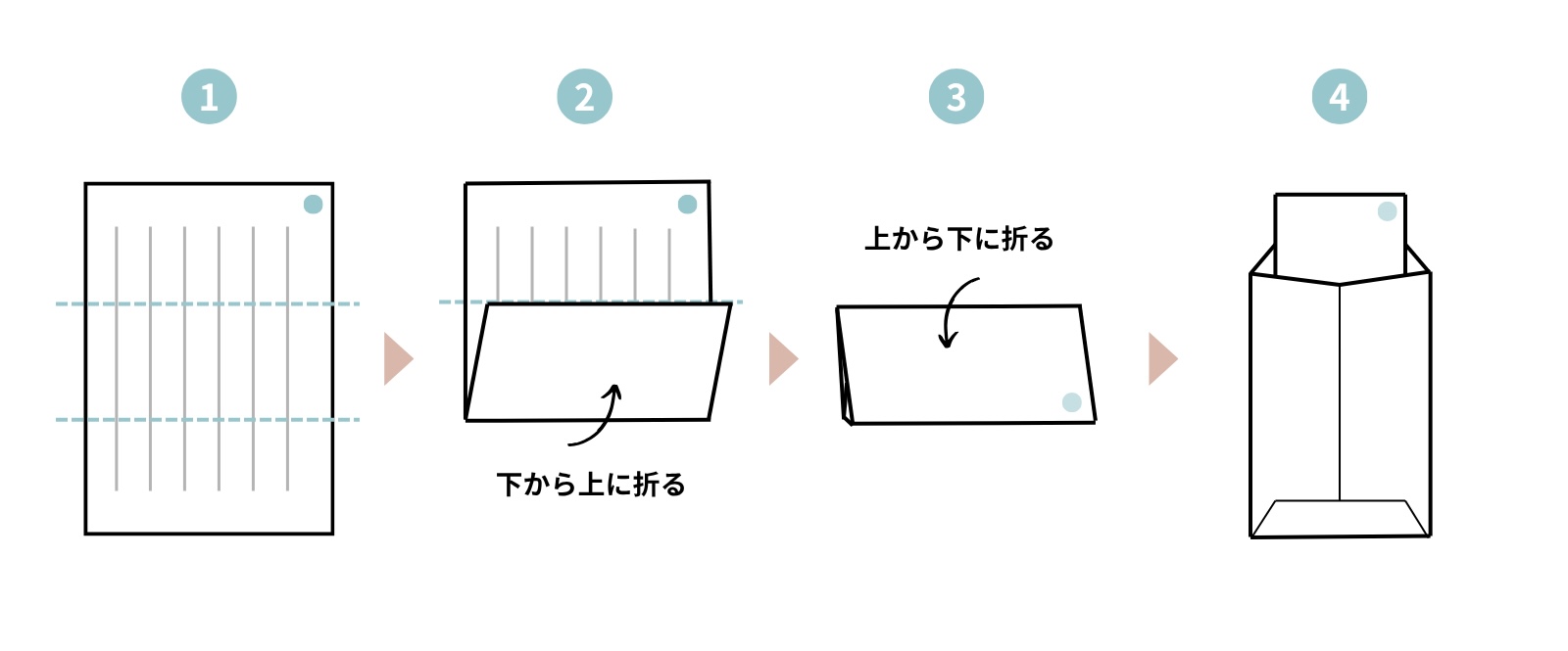 - 文書の書き初めの部分が右上に来るようにして、封筒に入れます